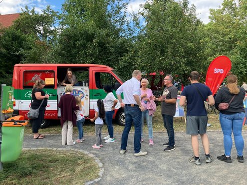 Der SPD Ortsverein Oetinghausen hatte für ein tolles Kuchenbuffet gesorgt, Bratwurst und Currywurst gab es, wie immer, natürlich auch. Eine tolle Atmosphäre auf dem ganzen Gelände. Die Ratskandidaten Brigitte Düsediekerbäumer, Mervan Omar und Olaf Greife sowie der Kreistagskandidat Ulrich Rolfsmeyer konnten mit vielen Familien ins Gespräch kommen und die Eisgutscheine an die Kinder verteilen.