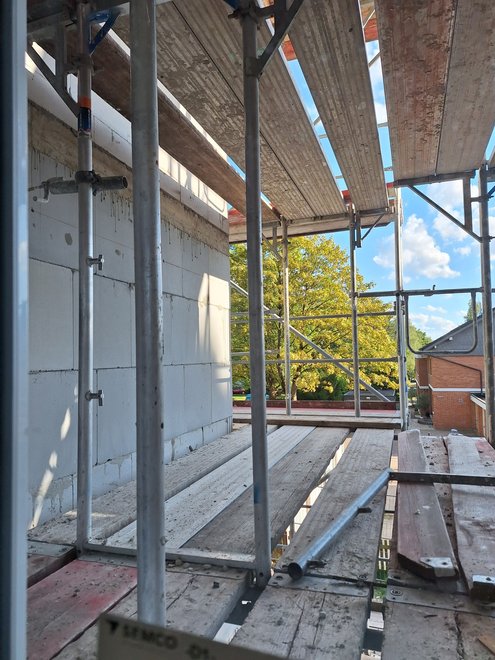 Der Innenausbau ist im vollen Gange und auch gegen 18.00 Uhr waren noch Elektriker auf der Baustelle. Möglich wurde der Bau nur durch die Kreisförderung für bezahlbaren Wohnraum. Super, mehr davon!